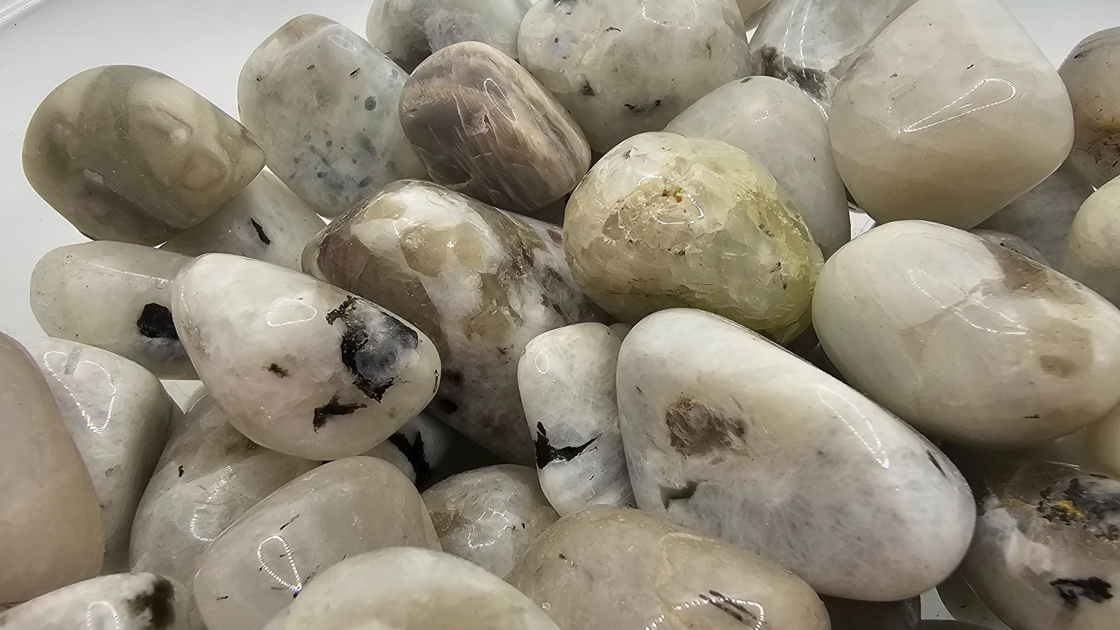 Rainbow Moonstone can create more balance and generates hope, harmony, and creativity. It is also said to improve wisdom and insight, as well as increase inspiration and passion.